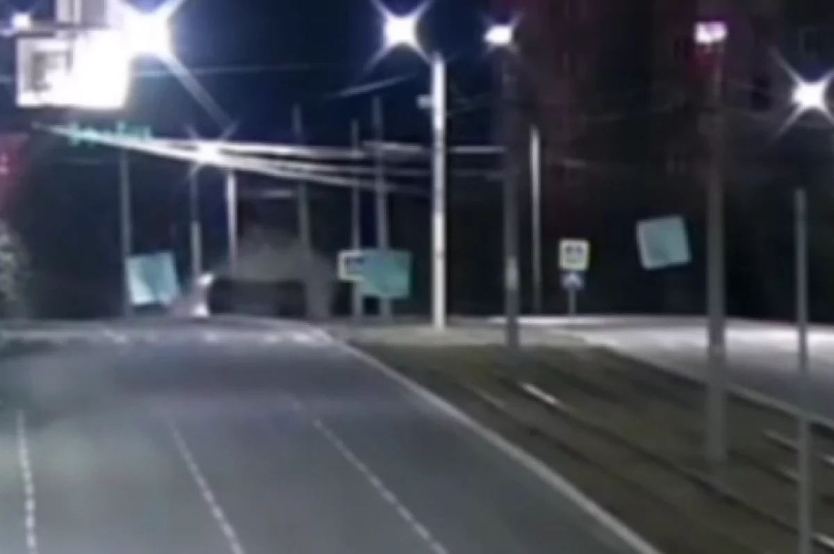 На опубликованных кадрах видно, как иномарку на скорости заносит на рельсы. После этого машина перекувыркивается через крышу и встаёт на бок.