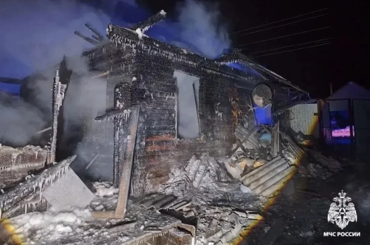Владелец дома и женщина получили ожоги, их доставили в больницу. Возгорание на 57 квадратах тушили 10 человек, предварительная причина — короткое замыкание.